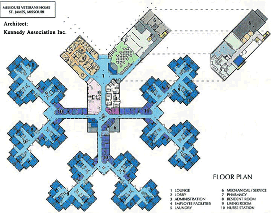 Floor plan of Missouri Veterans Home, St. James, Missouri. View enlarged plan. Credit: Kennedy Associates/Architects