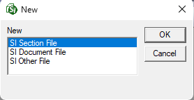 The New command will create a SpecsIntact Section , Document, or Other file.